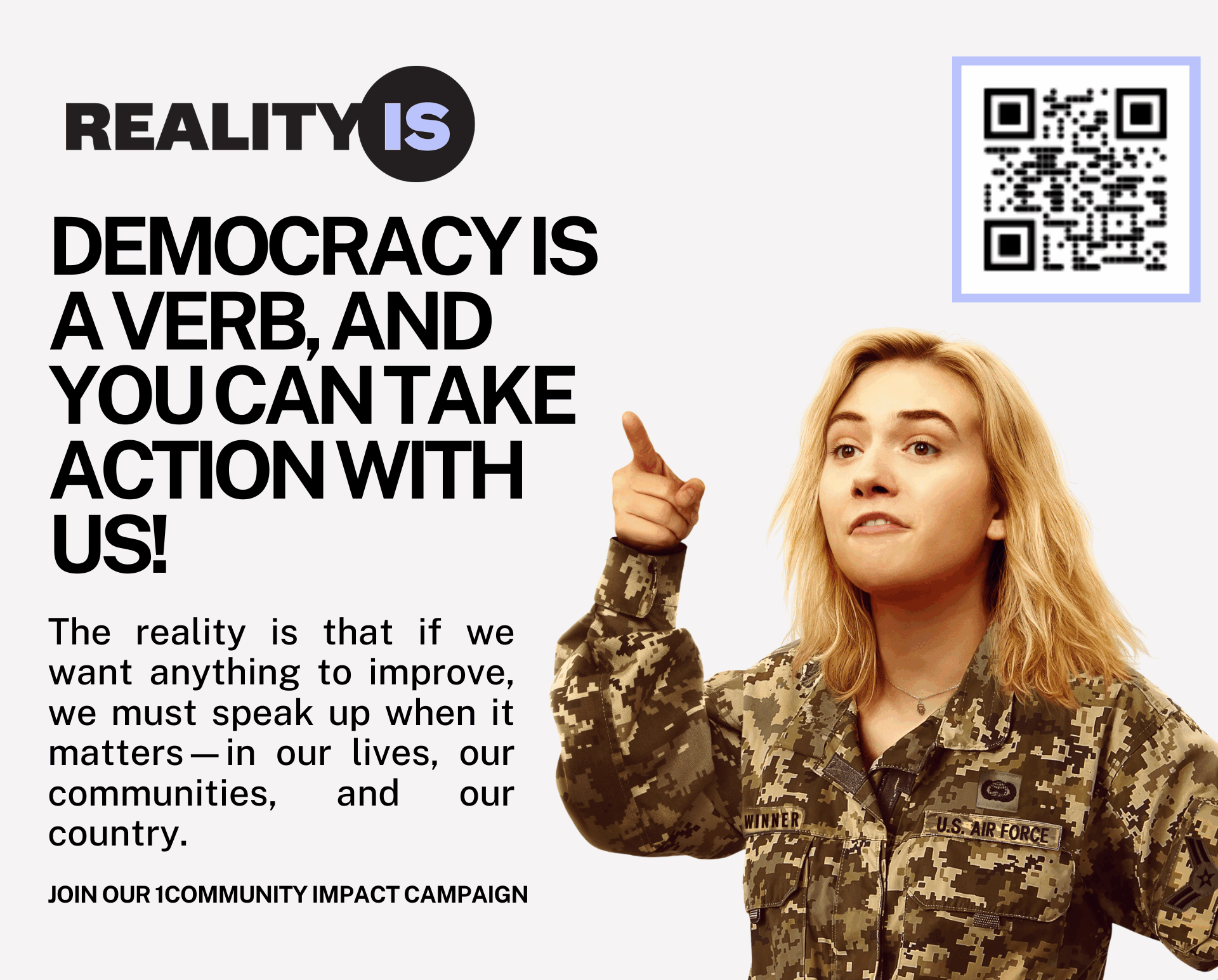 Our “Reality Is Us” campaign launched with a bold mission: reshape how young people think about civic engagement by building a vision of active, collective participation where our system of government is only as strong and courageous as we are. We didn’t guess what would resonate. Through seven rounds of rigorous message testing with approximately 2,000 people, focus groups with veterans and Gen Z activists, and data-driven iteration, we developed a campaign message that cut through the noise. The insight was simple but powerful: speaking up isn’t always easy, but when the stakes are high, telling a difficult truth can feel like the only right thing to do. The results speak to the power of thoughtful strategy meeting authentic storytelling. We reached 1,930,090 people and generated 1,433,120 impressions on Instagram alone, creating a digital movement that transcended typical film marketing. Most importantly, we inspired 62,486 concrete actions and collected 45,000 petition signatures advocating for Reality Winner’s pardon. This wasn’t passive engagement or empty clicks. These were real people taking meaningful steps toward justice because they connected with Reality’s story and saw themselves in her courage.